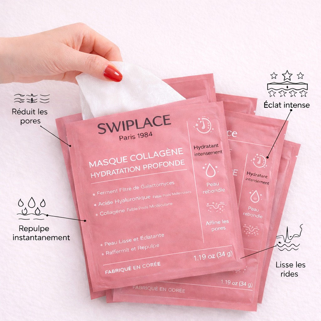 Swiplace est un masque de nuit au collagène conçu pour agir en profondeur pendant que vous dormez.Sa texture enveloppante forme un film invisible qui aide à lisser, repulper et raviver l’éclat de la peau. Dès le réveil, la peau paraît plus lisse, plus ferme et visiblement plus lumineuse.✨ Résultat visible en 2 semainesDéjà adopté par plus de 24 000 femmes.